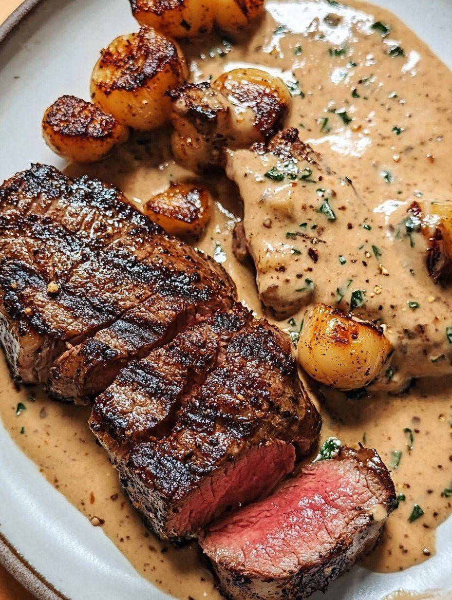 Biefstuk met romige knoflook-bourbonsaus