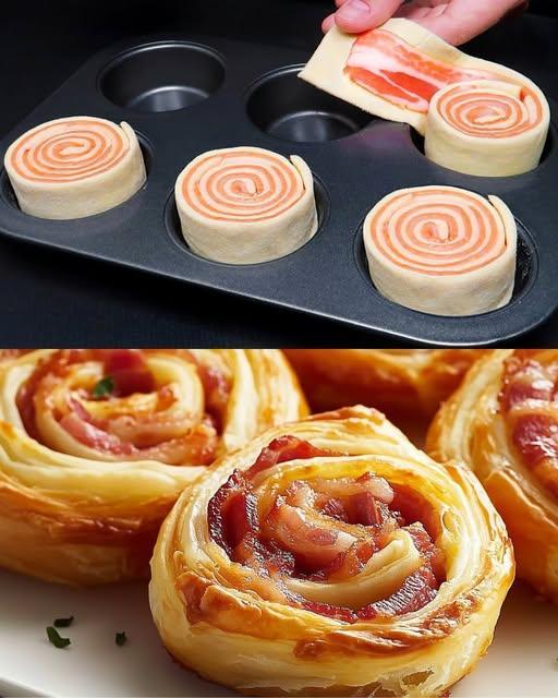 Deze bladerdeeghapjes met spek en kaas zijn het perfecte voorgerecht of tussendoortje. Elk hapje combineert knapperig bladerdeeg met smaakvol spek en gesmolten kaas. Ze zijn snel te maken en zitten boordevol smaak, waardoor ze perfect zijn voor elke gelegenheid!