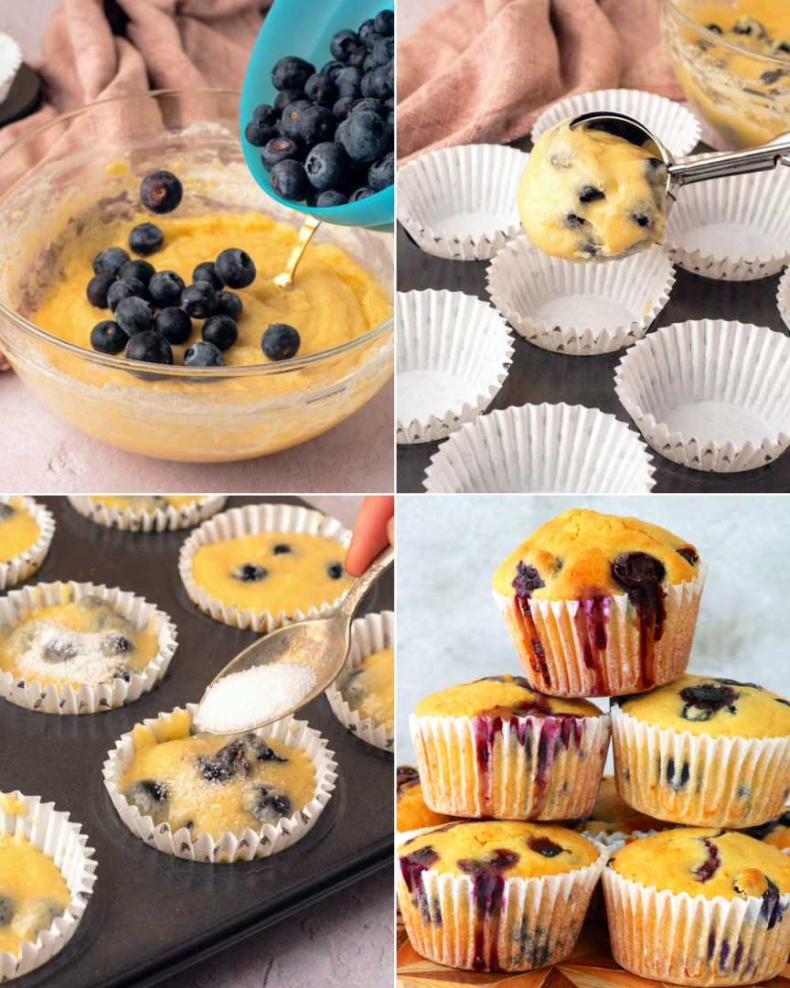Hier is een heerlijk recept voor het maken van zachte, luchtige bosbessenmuffins: