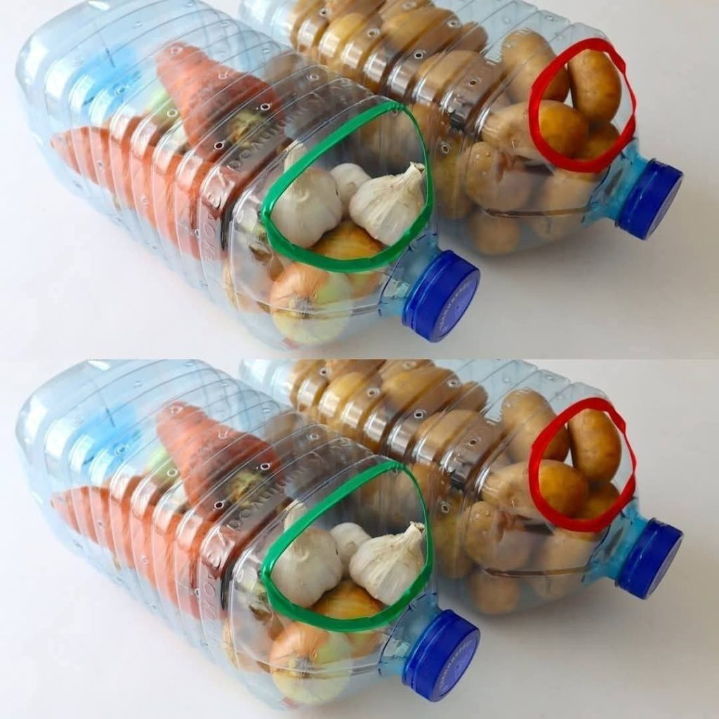 1. Zelfgemaakte bewaarbakjes voor snacks Snijd de bovenkanten van grote plastic flessen af om handige bewaarbakjes te maken voor droge producten zoals bonen, linzen, rijst of zelfs snacks zoals popcorn. Deze geïmproviseerde potten zijn niet alleen handig om je voorraadkast te organiseren, maar ze zorgen er ook voor dat je makkelijk en zonder rommel kunt schenken.
