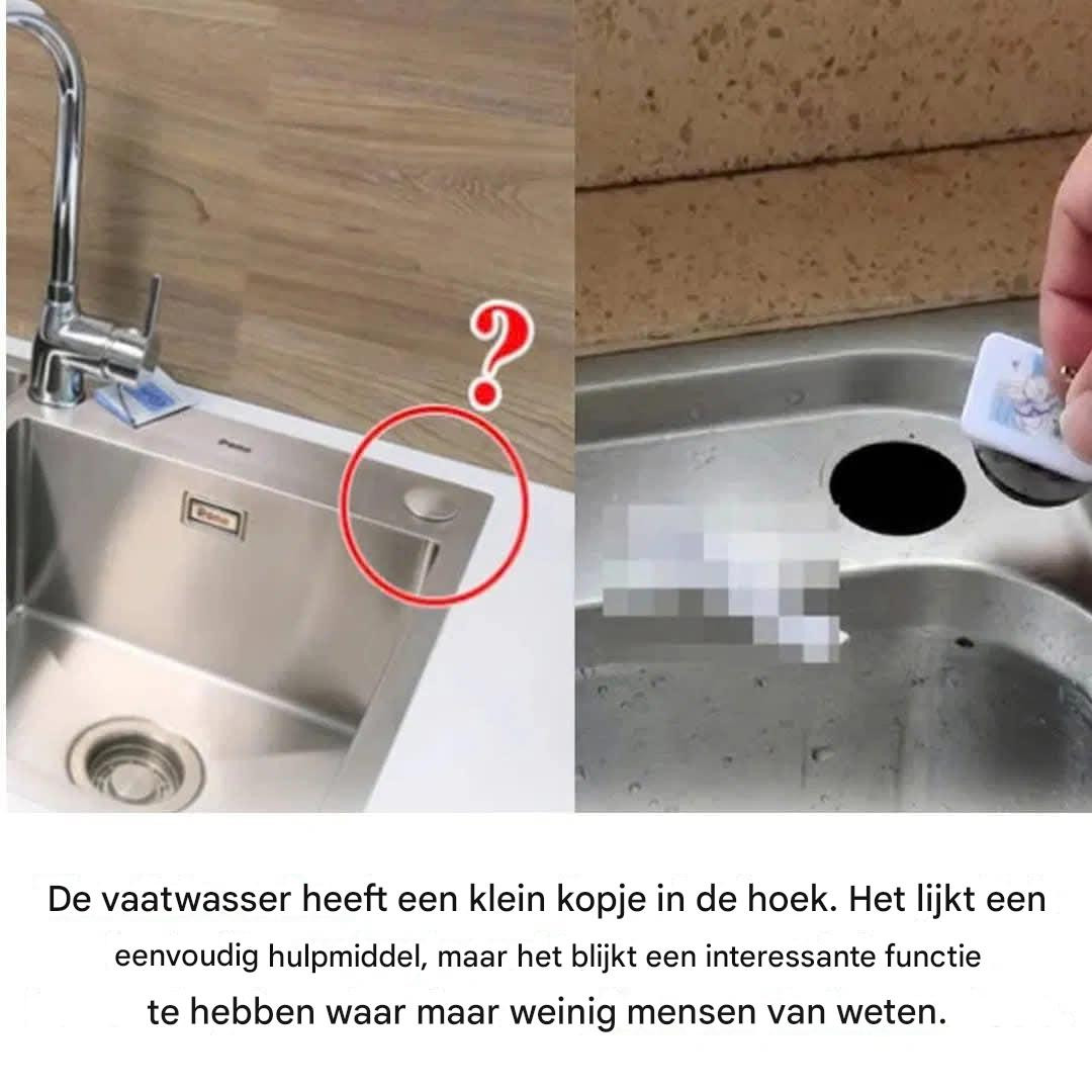 Het is een luchtopening voor de vaatwasser, een detail dat in sommige regio’s vereist is om te voorkomen dat verontreinigd water in de leidingen voor schoon water terechtkomt. Het is bedoeld om de waterafvoer te verbeteren en de hygiëne te handhaven.