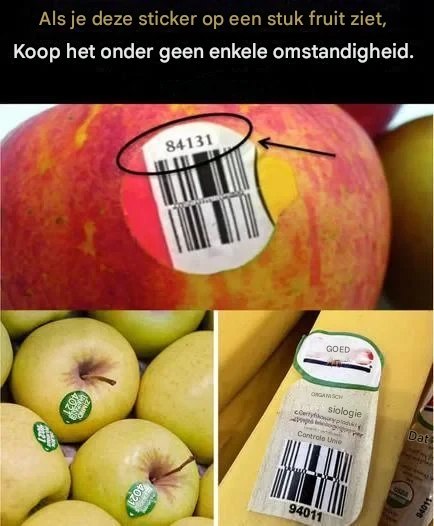 De meeste mensen werden nauwelijks opgemerkt op de kleine stickers op hun fruit, behalve bij de kassa. Maar deze minuscule labels bevatten meer informatie dan je zou denken. De nummers, de vergelijkbare Price Locator Units (PLU-codes), indirect hoe het product wordt geproduceerd: conventioneel, biologisch of genetisch gemodificeerd.