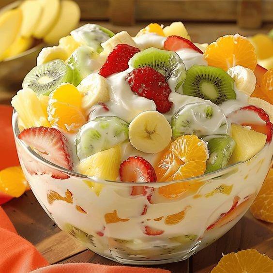 Bereiding van het fruit: Meng al het gesneden fruit in een grote kom. Voeg eventueel de geraspte kokos toe.