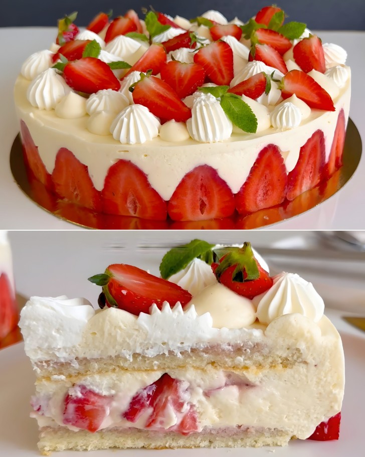 Wil jij een taart maken waarmee je gegarandeerd indruk maakt op familie en vrienden? 😍 Dan is deze luchtige aardbeientaart met romige mascarpone-vulling precies wat je zoekt! Met verse aardbeien 🍓, zachte biscuit 🍰 en een onweerstaanbaar romige crème, wordt elke hap een feest! 🎉
