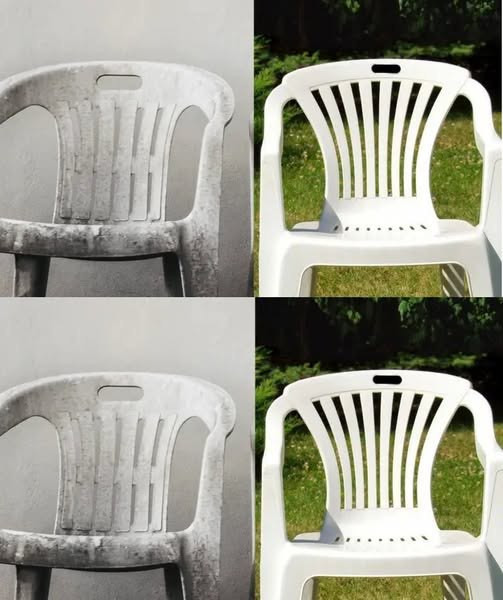Na verloop van tijd verliezen onze plastic stoelen voor binnen of buiten vaak hun glans: ze worden dof, vergeeld en soms zelfs een beetje ruw.