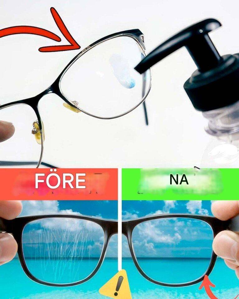 Voordat je begint, was je de bril grondig met een beetje afwasmiddel en warm water. Droog hem af met een microvezeldoek om strepen te voorkomen.