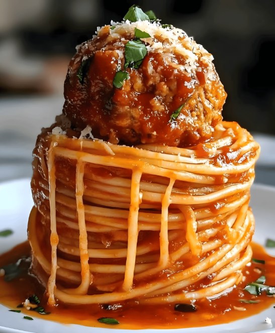 Maak indruk op je gasten met deze spectaculaire spaghetti toren, een heerlijke en originele manier om spaghetti met gehaktballen te serveren! π€© Deze toren is gevuld met sappige gehaktballen, rijke marinara saus en heerlijke gesmolten kaas, een garantie voor een onvergetelijke en smaakvolle maaltijd! π Een echte showstopper voor elk diner! β¨