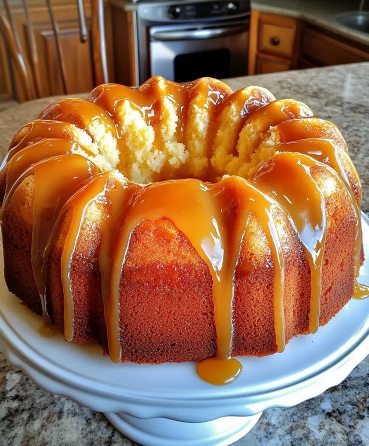 Vul een ingevette en met bloem bestoven ovenschaal van 25 cm. Buisvormig. Bak het op 350°C, totdat een tandenstoker die in het midden wordt gestoken, hard is, 55-70 minuten. Laat 10 minuten afkoelen.