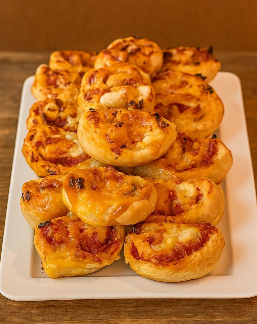 Chorizo-hapjesrolletjes zijn ook erg populair vanwege hun eenvoud: je hoeft alleen maar het deeg uit te rollen, op te rollen, in plakjes te snijden en