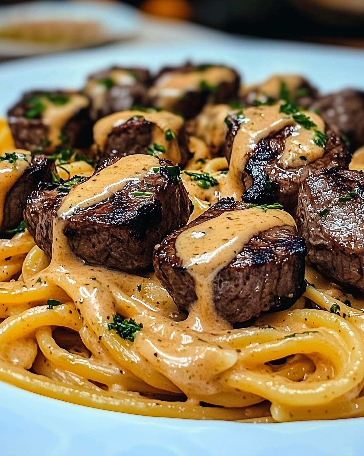 Deze Knoflookbotersteak Bites met Romige Parmezaanse Pasta is het ultieme comfortfood! Sappige, aangebraden steak bites omhuld met een rijke knoflookbotersaus worden geserveerd met een heerlijke, romige Parmezaanse pasta. Het is een gerecht van restaura
