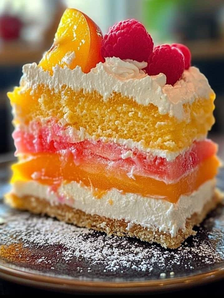 De No-Bake Peach Split Cake is een verfrissend en gemakkelijk te maken dessert met lagen romige vulling, sappige perziken en een knapperige crackerkorst uit Graham. Deze cake is perfect voor warm weer en heeft geen oven nodig, waardoor het een ideale keuze is voor zomerse bijeenkomsten of een snelle dessertoptie. De combinatie van romige texturen en smaken van vers fruit maakt het een heerlijke traktatie voor elke gelegenheid.