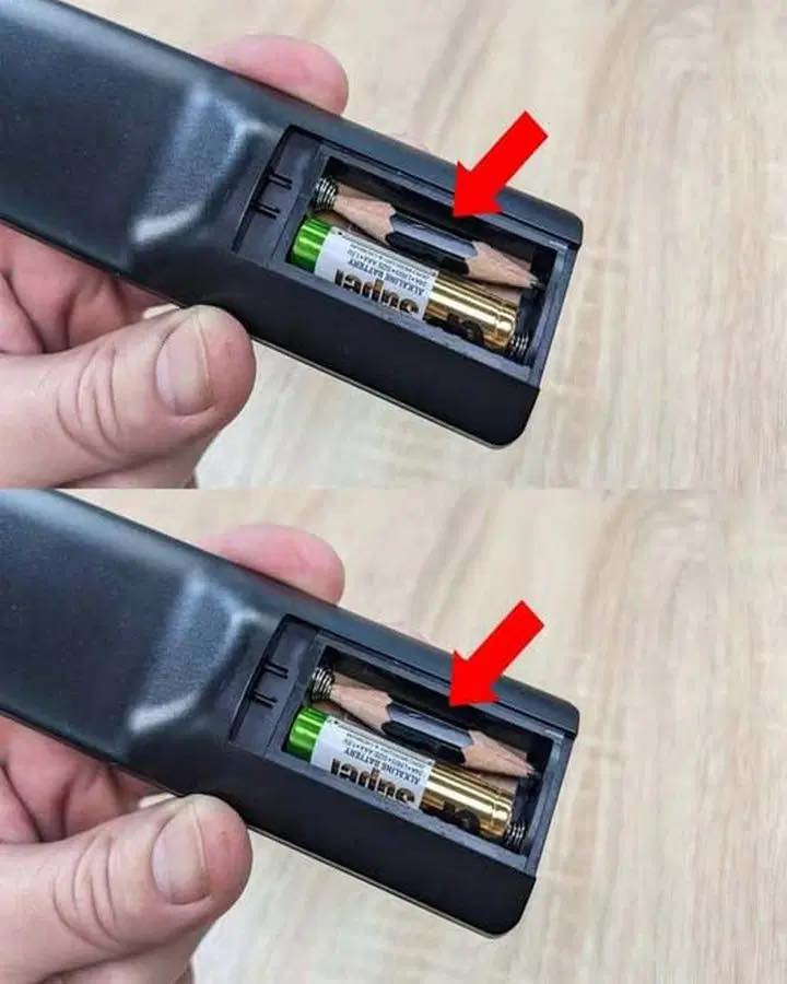 Slijp een stukje potlood op de lengte van de ontbrekende batterij.