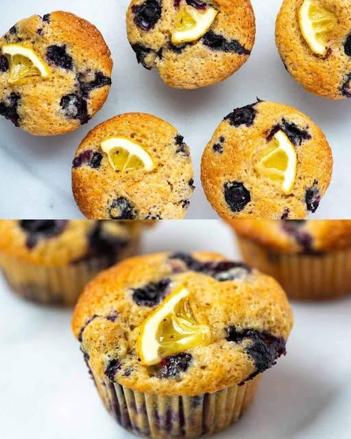 Deze citroen-bosbessenmuffins zijn licht, luchtig en zitten boordevol frisse, pittige citroensmaken en sappige bosbessen.