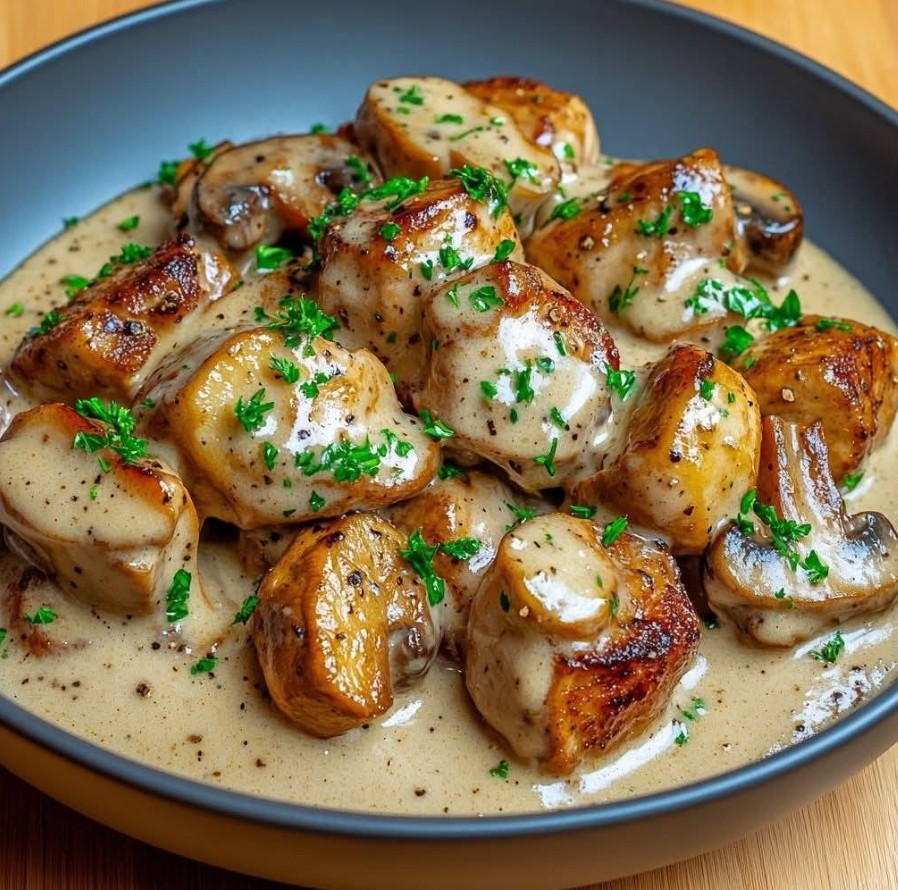 Laat het op laag vuur sudderen 5 tot 7 minuten, totdat de saus iets dikker wordt en het vlees bedekt. Bestrooi verse peterselie vlak voor het serveren met verse peterselie om de frisheid en geur te behouden.