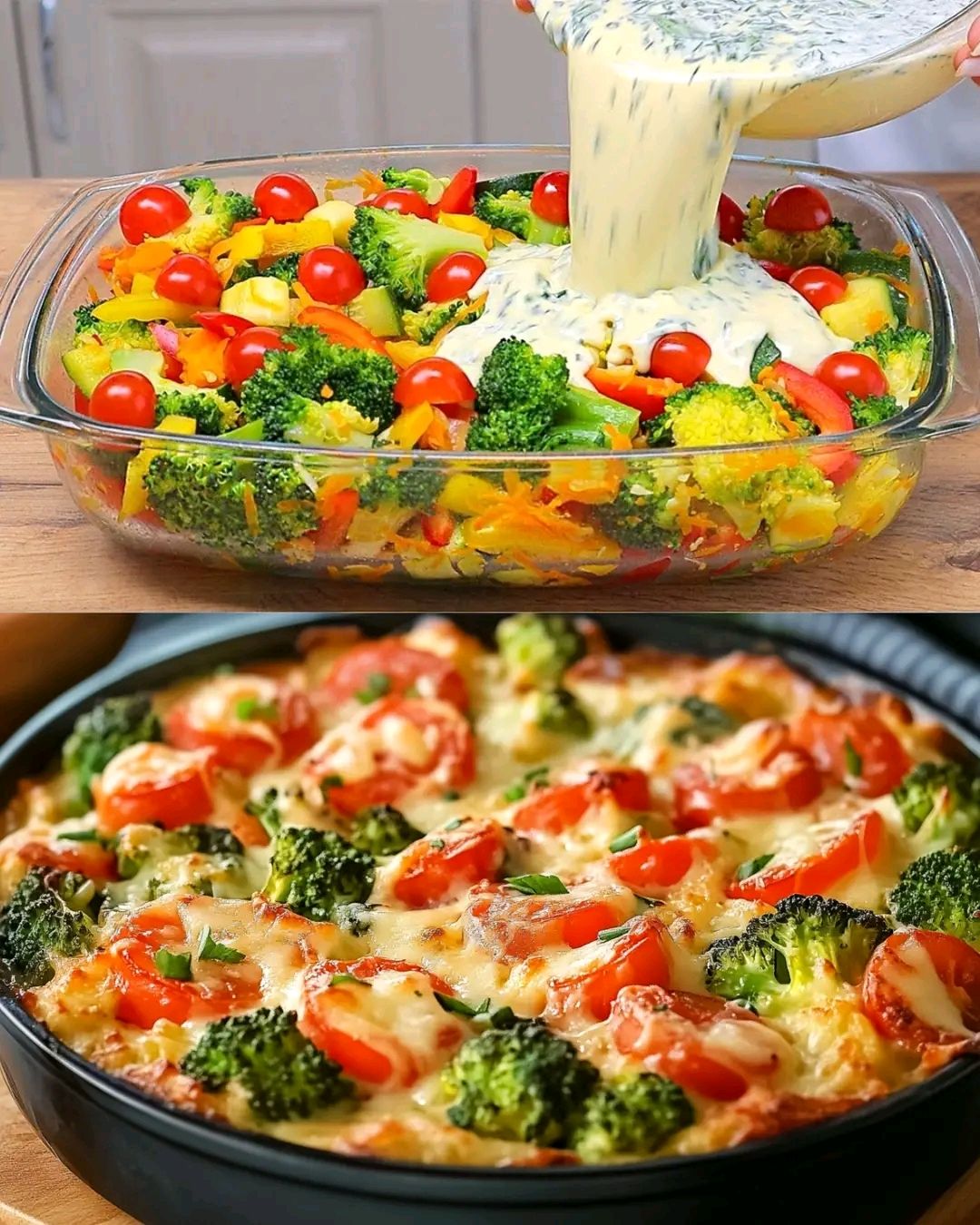 Deze romige broccoli- en boerenkoolgratin met mozzarella is een heerlijk en voedzaam gerecht dat verse groenten combineert met een romige kaassaus. Broccoli en boerenkool worden gebakken met knoflook, uien en tomaten, daarna bedekt met een rijke, romige saus en tenslotte bedekt met gesmolten mozzarella. Als dit gerecht perfect bereid is, is het ideaal als hoofdgerecht voor vegetariërs of als een verwarmend bijgerecht bij elke maaltijd. De smakencombinatie van aardse boerenkool tot rijke room en smeuïge kaas, zorgt ervoor dat je meer wilt.