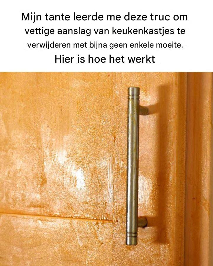 Hieronder vindt u een stapsgewijze handleiding voor het gebruik van deze eenvoudige, effectieve truc om uw keukenkastjes er weer als nieuw uit te laten zien: