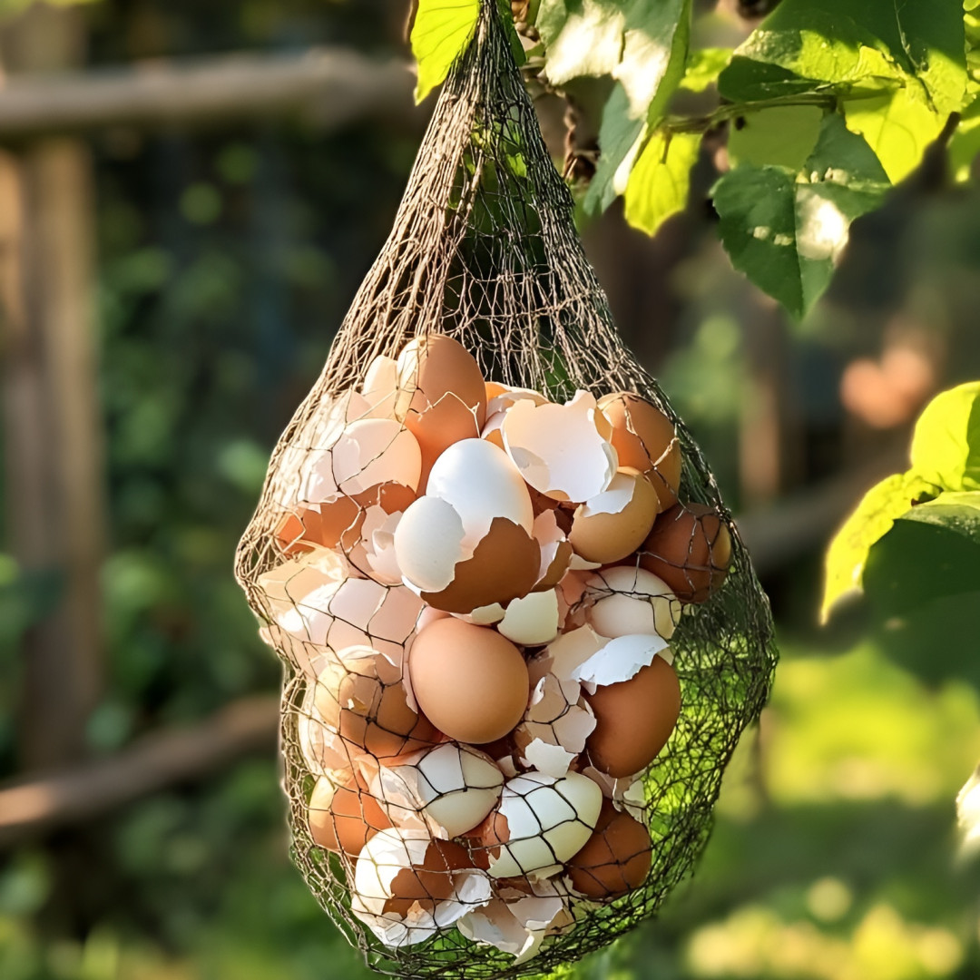 👉 Door eierschalen in een netzak te hangen of ze direct in de bodem te verwerken, zorg je voor een langdurige en geleidelijke afgifte van voedingsstoffen zonder het gebruik van kunstmest.