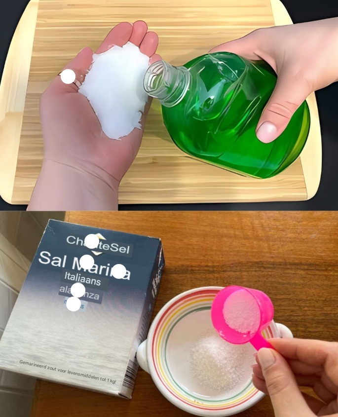 HOME 1. Meng 2 eetlepels zout, afwasmiddel, 2 eetlepels ontsmettingsalcohol en een beetje azijn in een plantenspuit.